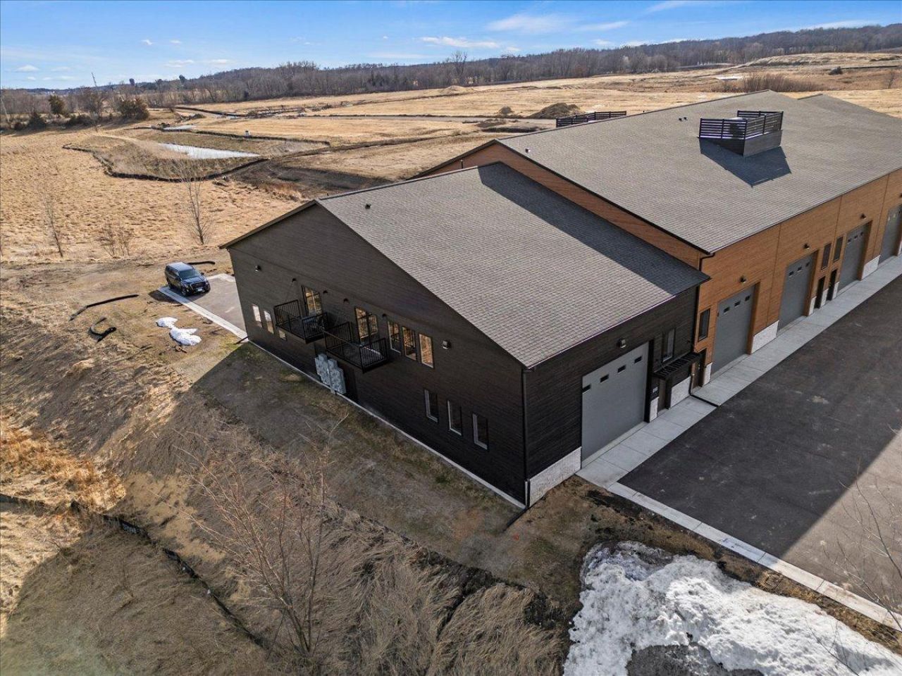 Exceptional Opportunity in Delano's Premier Commercial CorridorPositioned in a highly sought-after location, this end-unit commercial space offers a rare combination of flexibility, functionality, and elevated design. Whether you're expanding a growing business, investing in a high-quality asset, or simply outgrowing your current workspace, this property delivers the infrastructure to support your next move.Offering 1,520 finished square feet on the main level plus a 288 sqft mezzanine, the layout is both efficient and versatile. The upper mezzanine provides the perfect setting for a private office, lounge, or kitchenette area, while the walk-out balcony overlooks peaceful wetlands, creating a rare and private backdrop not often found in commercial spaces.Designed with performance in mind, the property features 20-foot ceilings, commercial-grade windows, abundant natural light, heated floors, and durable 5 concrete flooring with floor drains. Two ductless mini-split systems provide efficient heating and cooling, ensuring year-round comfort.Accessibility and functionality are unmatched with a 16 x14 overhead door, separate entry door, and fire suppression system already in place. The half bath on the main level adds convenience, while the end-unit positioning allows for additional windows and enhanced privacy.Constructed with LP SmartSide siding and quality finishes throughout, this space is ideal for a wide range of uses, including warehouse, workshop, office, showroom, hobby space, or ultimate garage.Spaces like this, where versatility meets quality and location, are increasingly difficult to find, especially with the upgrades throughout!Bring your vision. This one is ready to deliver.